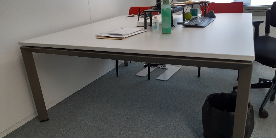 Table de réunion Table de réunion carrée, plateau de 160cm de côté, bon état, plateau blanc, piètement métallique gris 54 - Meurthe-et-moselle Réservé aux personnes publiques jusqu’au 31/01/2026